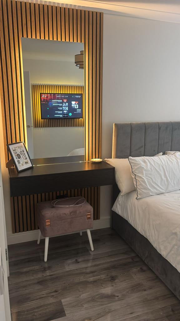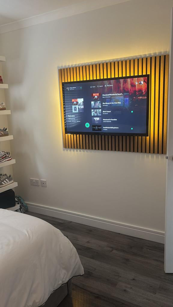 The acoustic slat wall is a fantastic choice for anyone looking to enhance their space with a sleek and modern design. Its elegant finish not only adds a touch of class but also serves a functional purpose by improving sound absorption in the area.