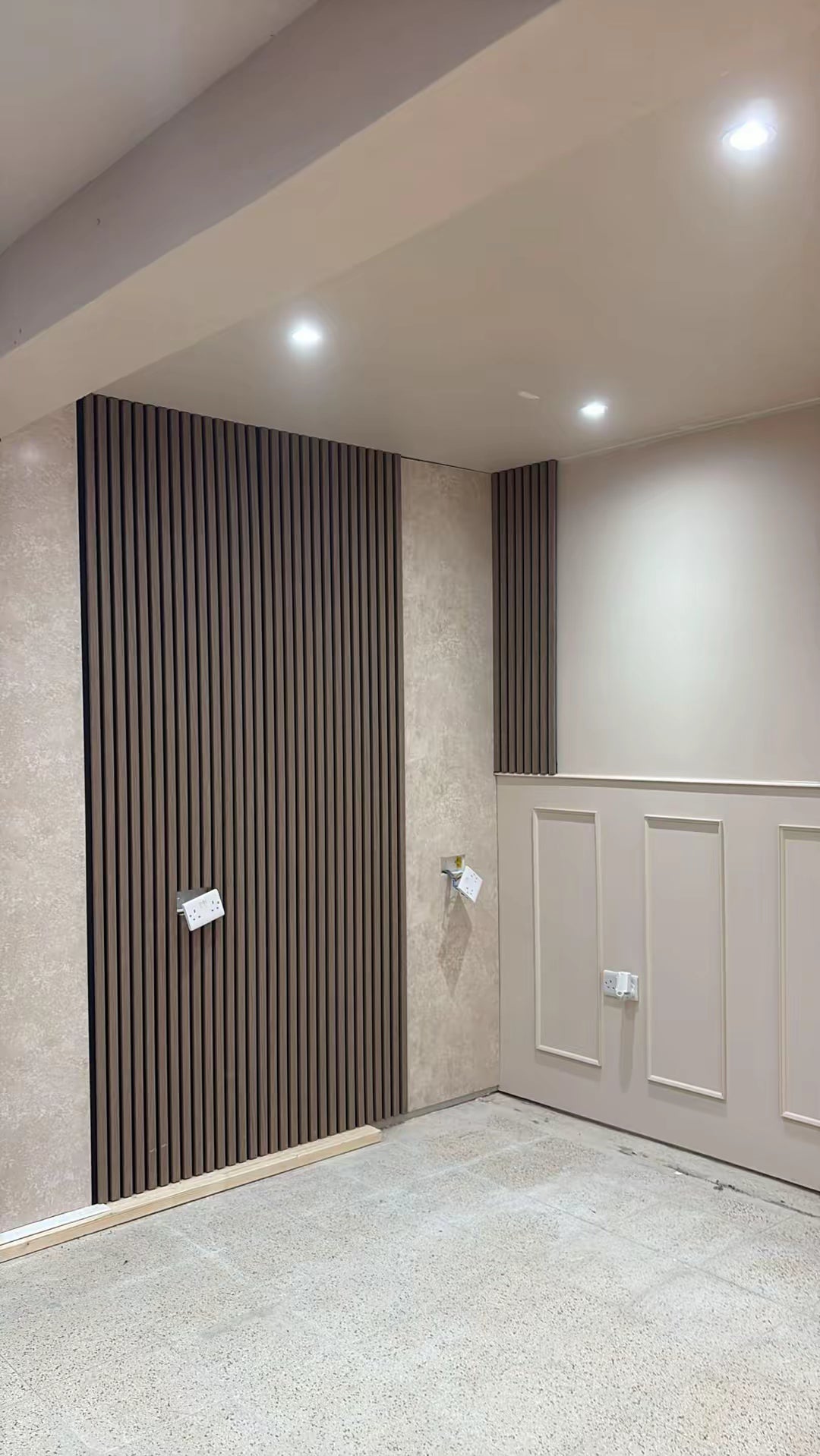 The acoustic slat wall is a fantastic choice for anyone looking to enhance their space with a sleek and modern design. Its elegant finish not only adds a touch of class but also serves a functional purpose by improving sound absorption in the area.